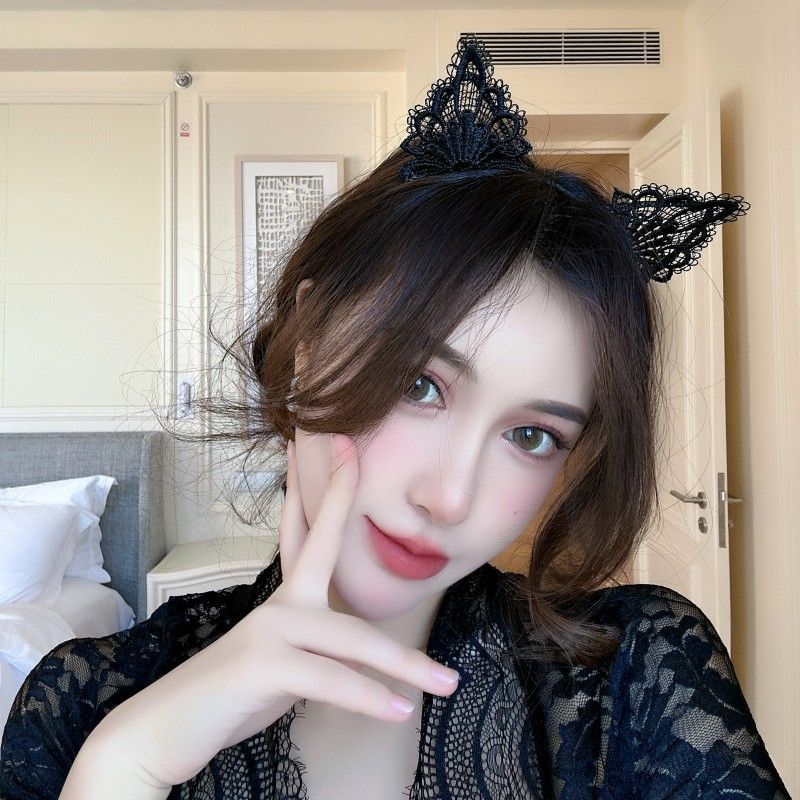 Cute lace cat ear headband, trimmed cat ear hair accessory, headband for cat girls, Christmas party hair clip